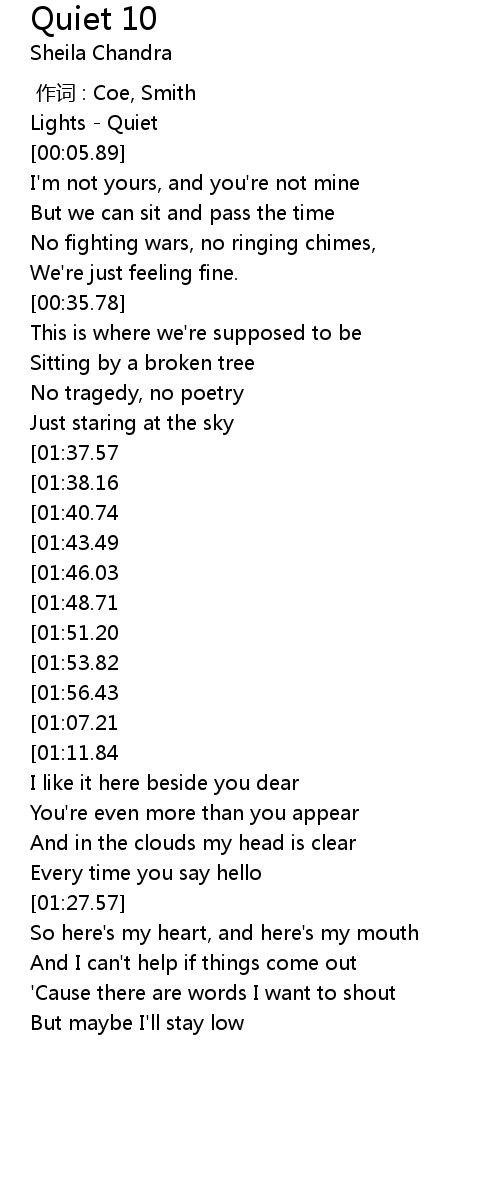 | [00:01.12] | Lights Quiet |