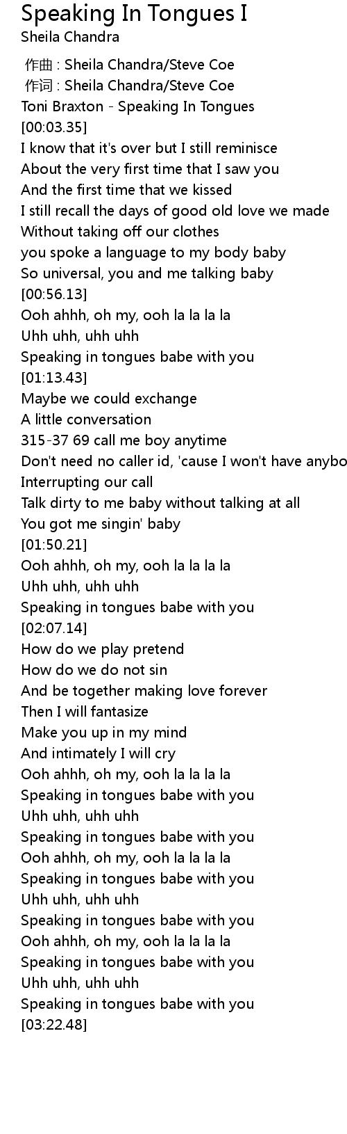 | [00:01.47] | Toni Braxton Speaking In Tongues |