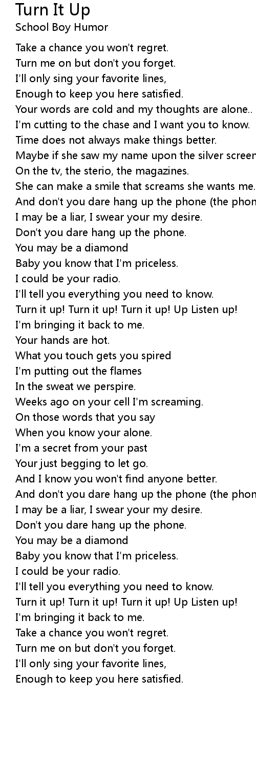Turn it up! Turn it up! Turn it up! Up Listen up! |