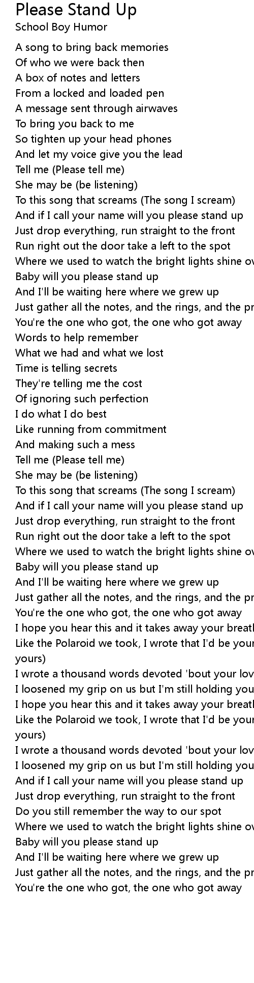 Baby will you please stand up |