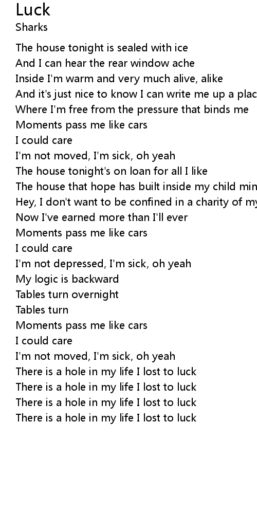| There is a hole in my life I lost to luck | |