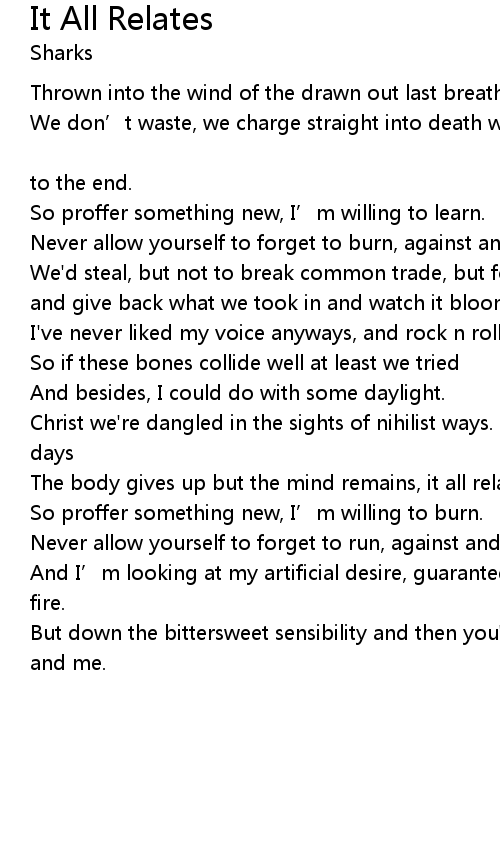 | Christ we' re dangled in the sights of nihilist ways. Exhausted from sleeping for days | |