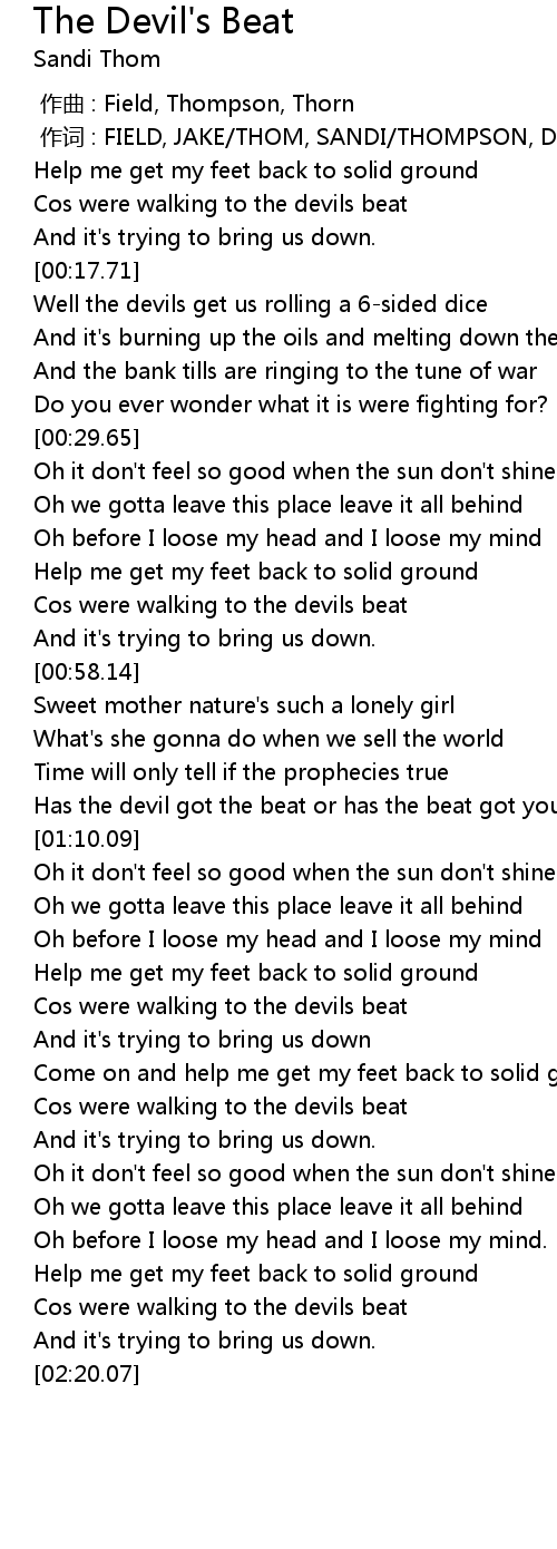 | [01:07.42] | Has the devil got the beat or has the beat got you. |