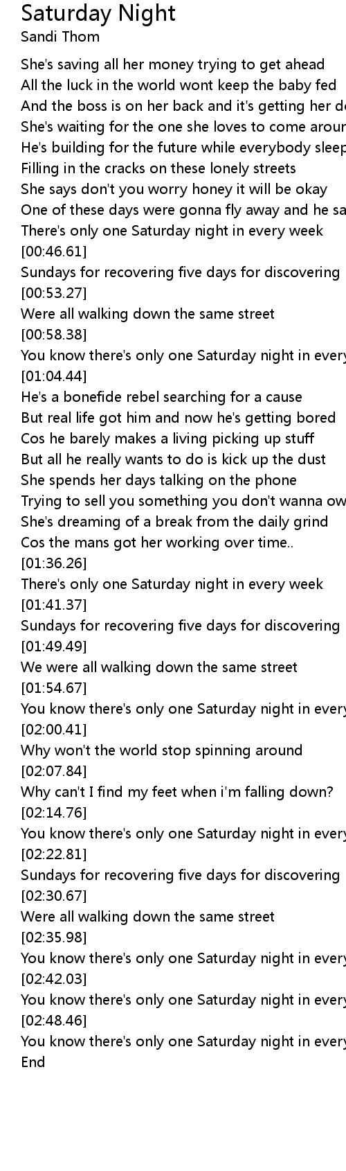 | [00:41.92] | There's only one Saturday night in every week |