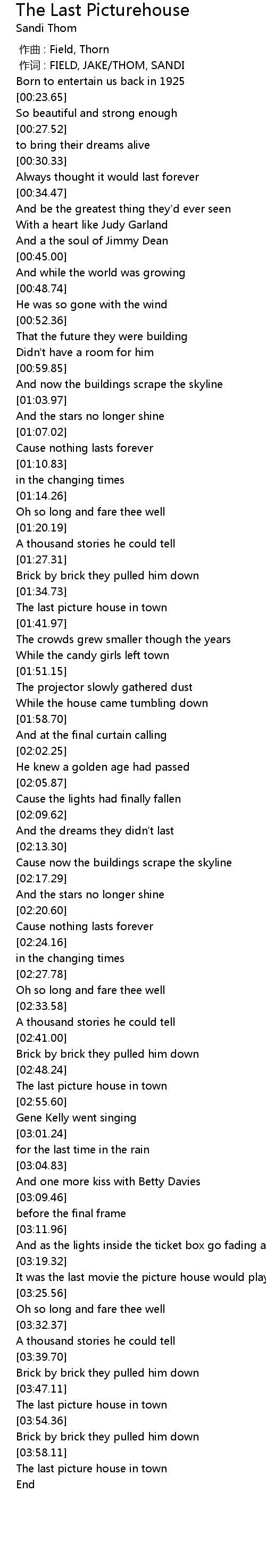| [03:20.70] | It was the last movie the picture house would play |