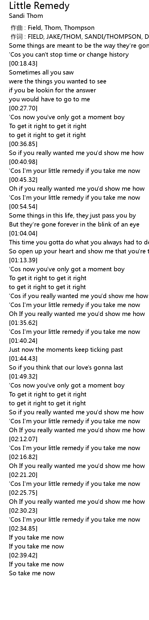 | [01:36.25] | ' Cos I' m your little remedy if you take me now |