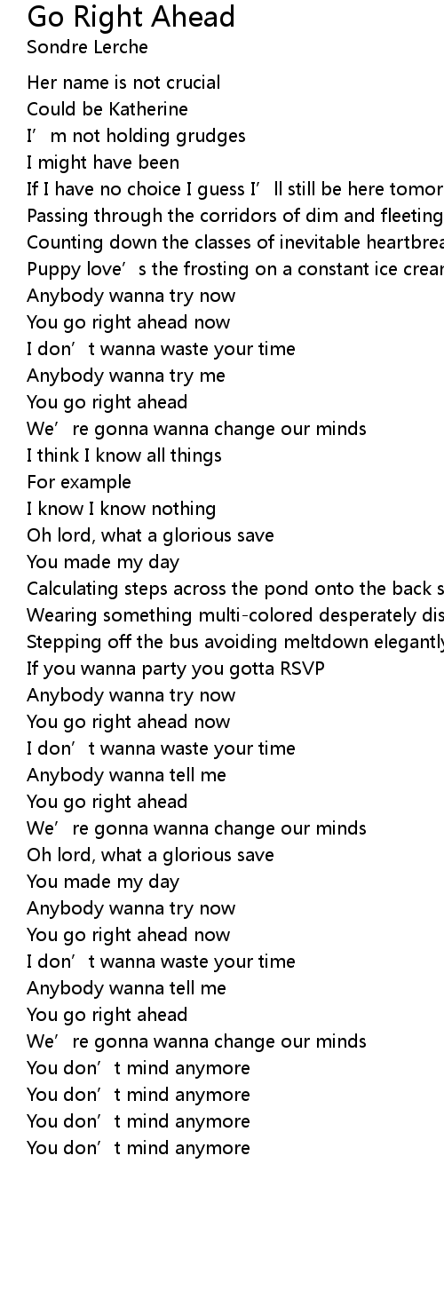| 歌曲 | Go Right Ahead |