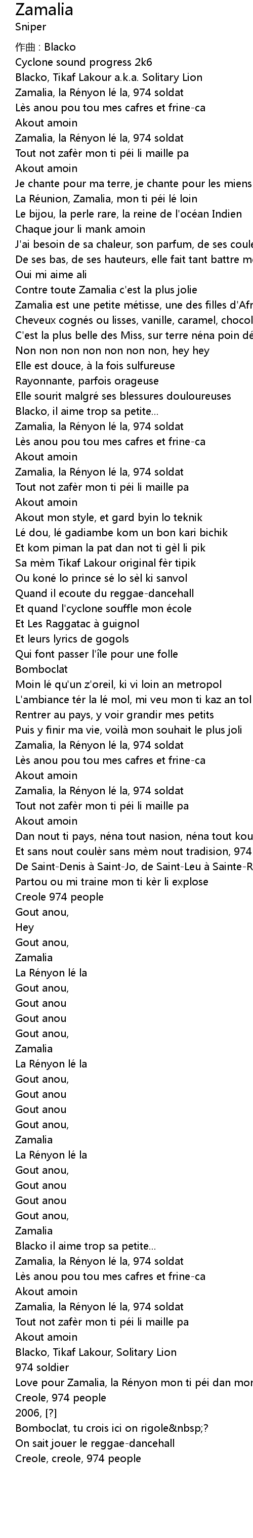 | La Re union, Zamalia, mon ti pe i le loin | |