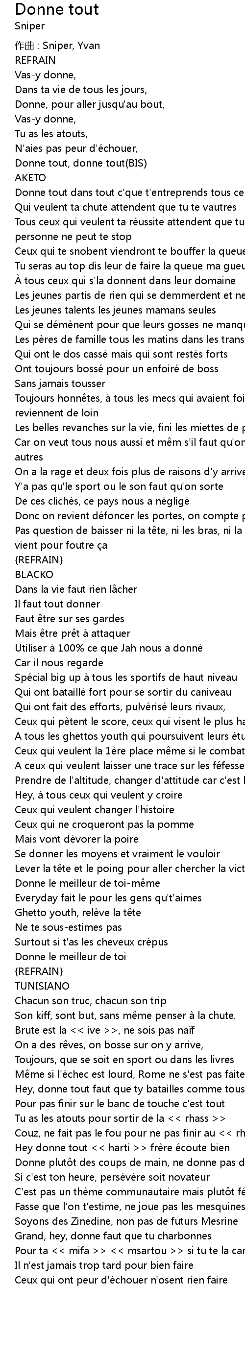 | Donne tout dans tout c' que t' entreprends tous ceux | |