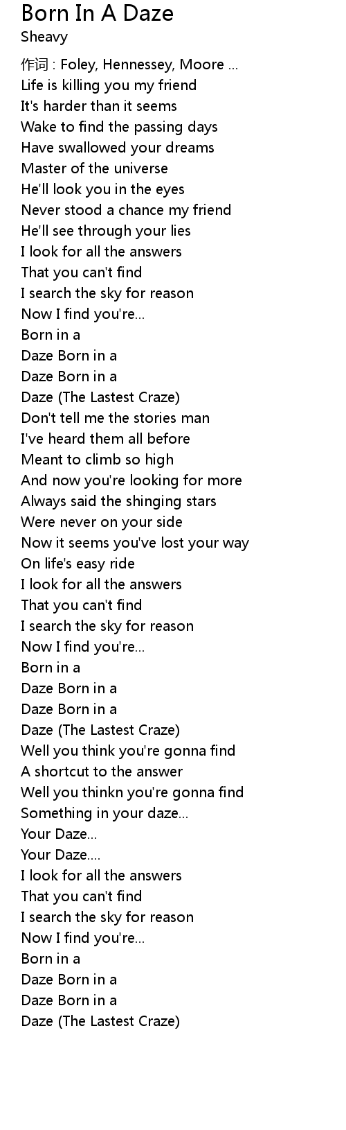 | 歌曲 | Born In A Daze |