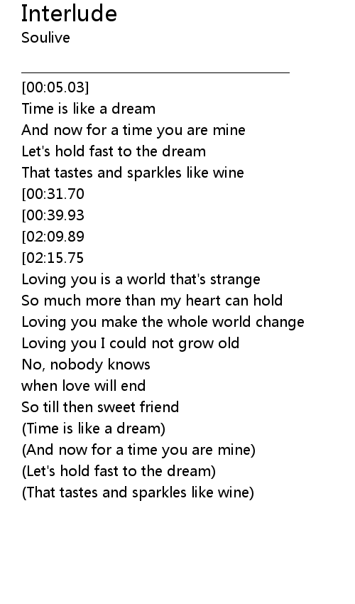 | [02:22.15][02:09.89][00:44.10] | What seem like an interlude now |