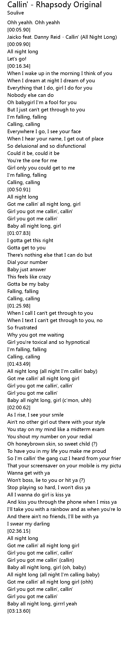 Got me callin' all night long girl |