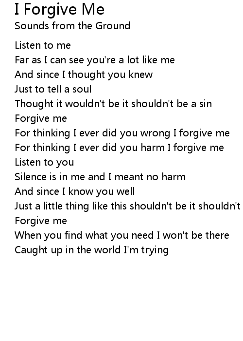 | For thinking I ever did you wrong I forgive me | |