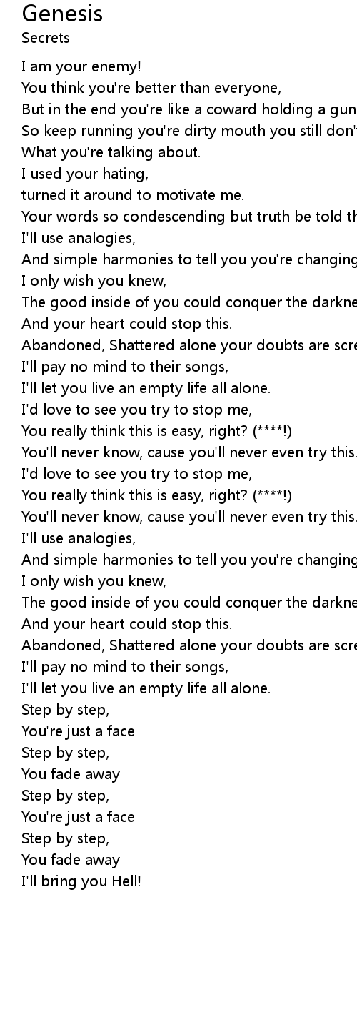 And simple harmonies to tell you you're changing and it's not a good thing. |