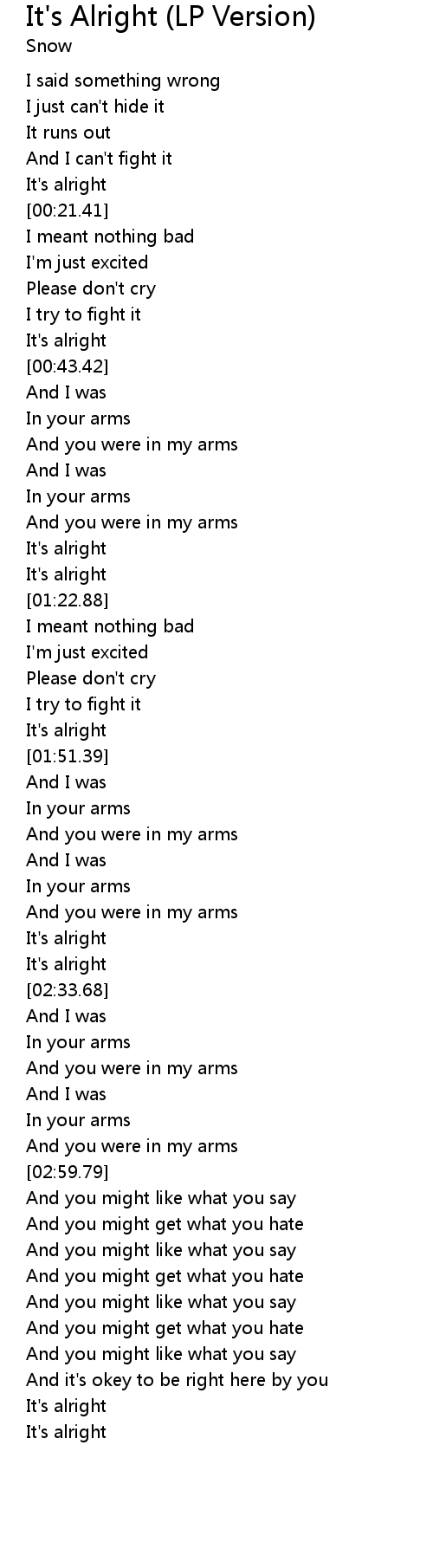 It's Alright (LP Version) 歌词