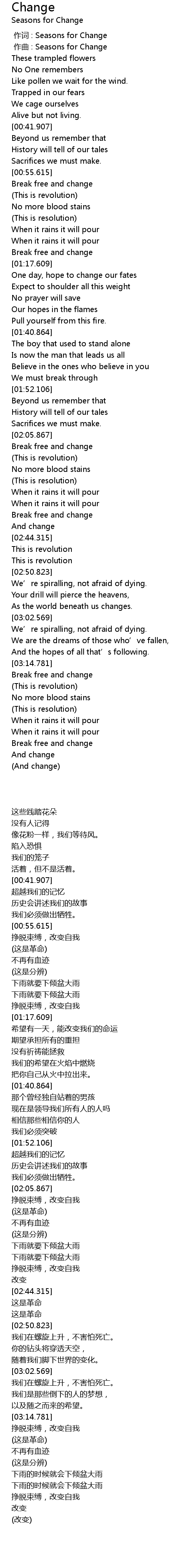 | [00:00.000] | 作词 : Seasons for Change |