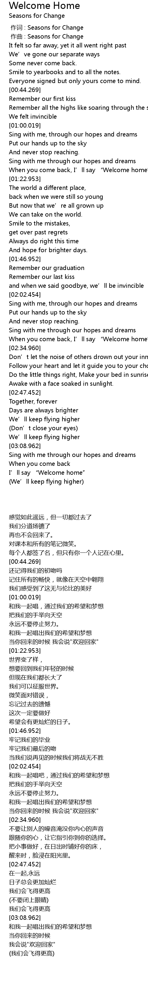 | [02:20.701] | 当你回来的时候 我会说"欢迎回家" |