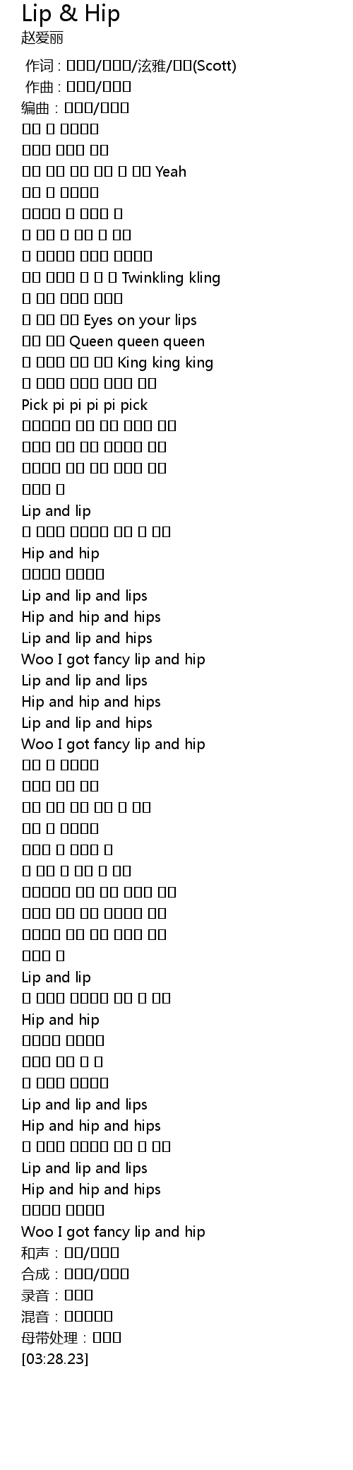 | [03:01.21] | Lip and lip and lips |