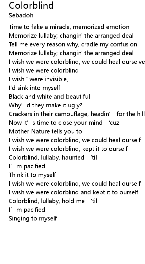 | I wish we were colorblind, we could heal ourself | |