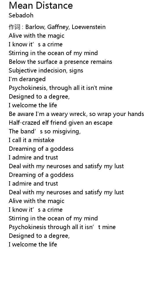 | 歌曲 | Mean Distance |