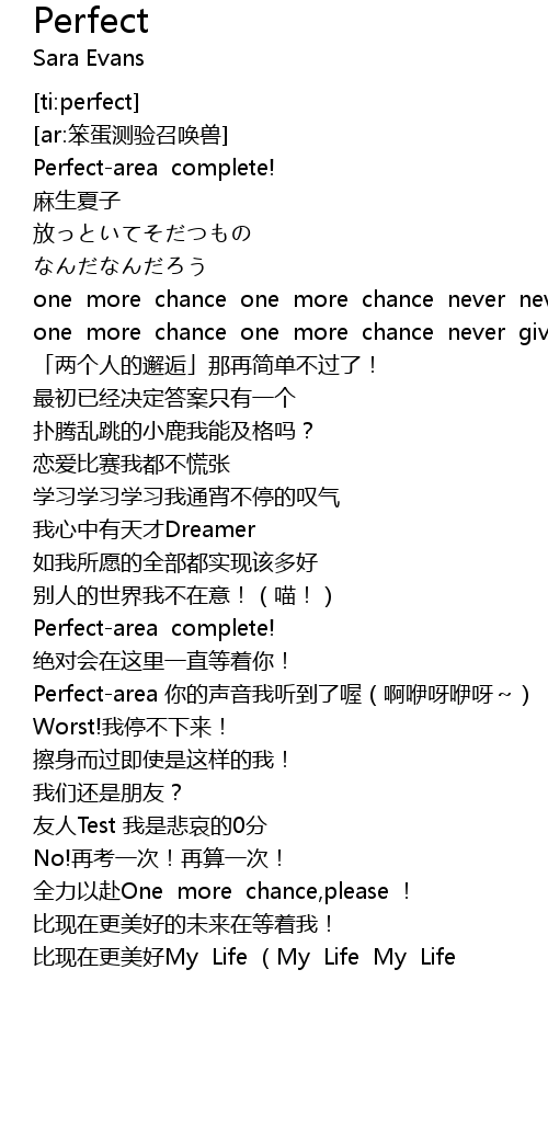 | [03:13.449] | Perfect-area 你的声音我听到了喔(啊咿呀咿呀~) |