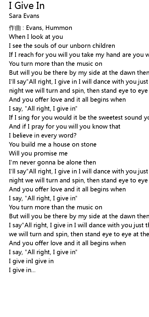 | 歌曲 | I Give In |
