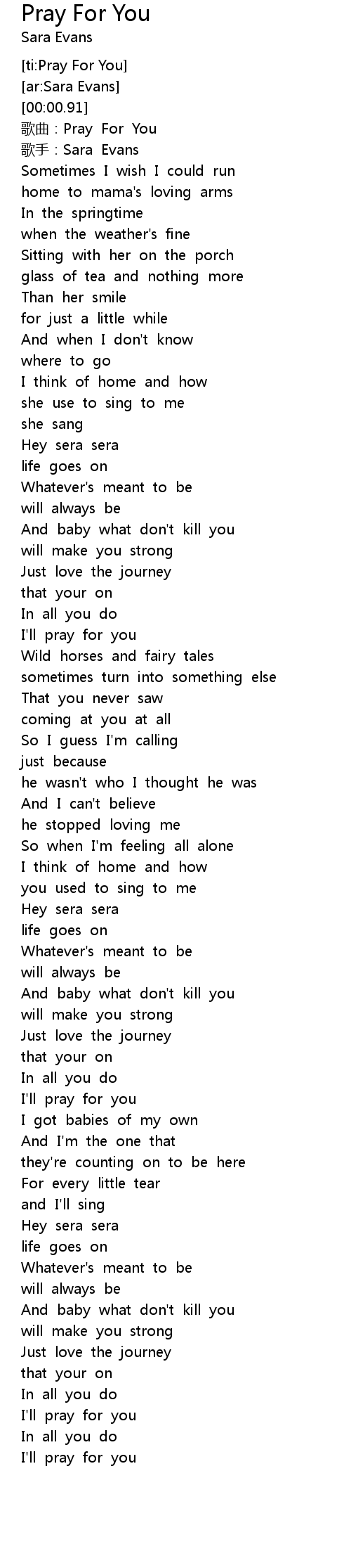 | [03:01.70] | I' ll pray for you |