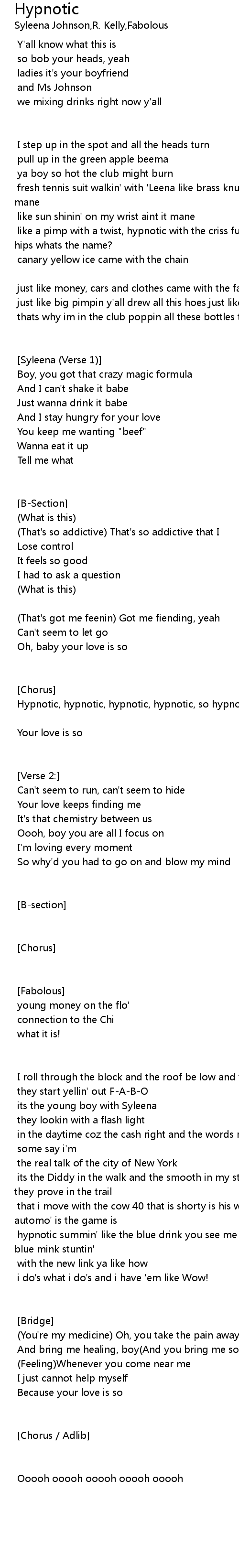 Hypnotic, hypnotic, hypnotic, hypnotic, so hypnotic |