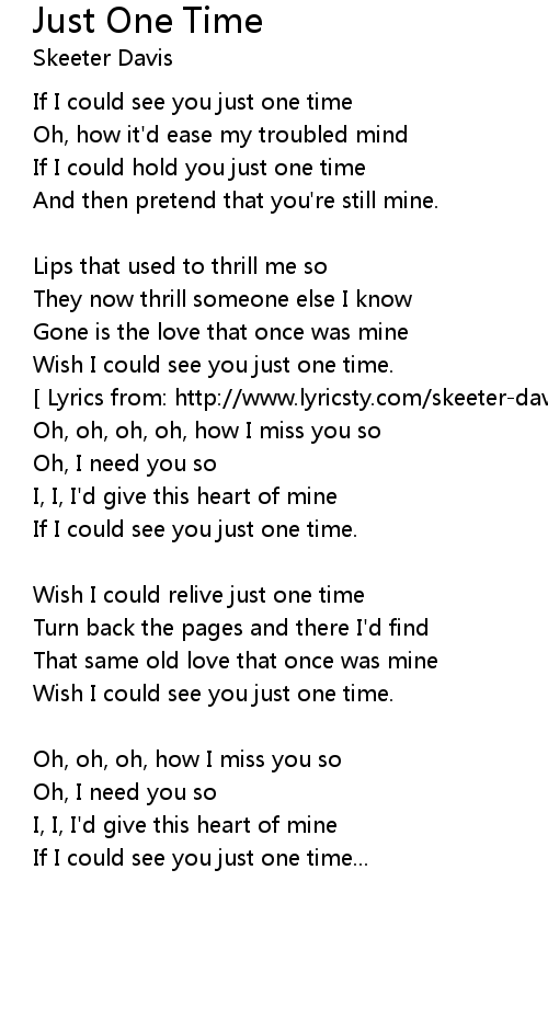 [ Lyrics from: http://www.lyricsty.com/skeeter-davis-just-one-time-lyrics.html ]