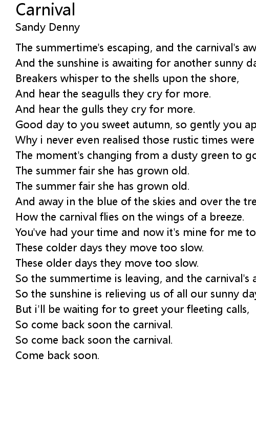 So the summertime is leaving, and the carnival's away, |