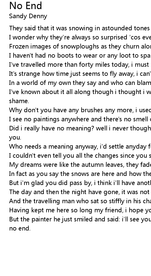 But the painter he just smiled and said: i'll see you in a while, this one has no end.