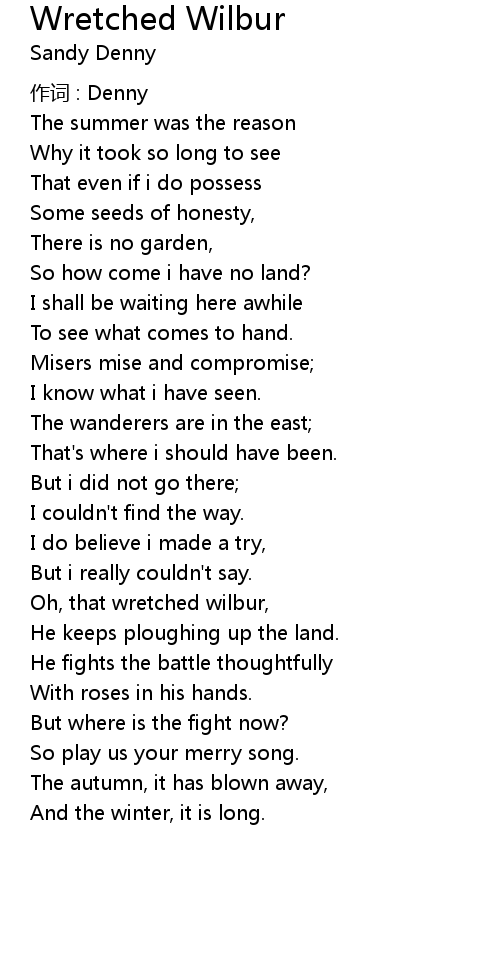 | Oh, that wretched wilbur, | |