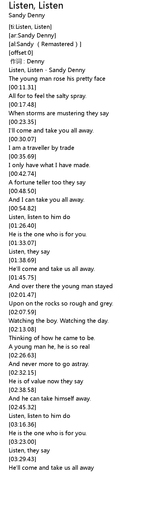 | [00:00.51] | Listen, Listen Sandy Denny |