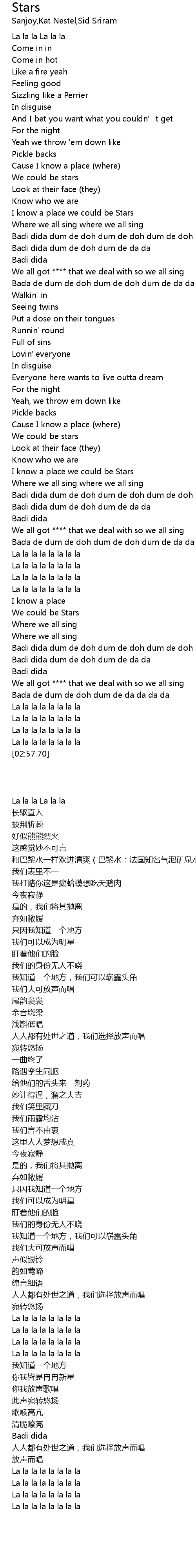 | [00:30.68] | I know a place we could be Stars |
