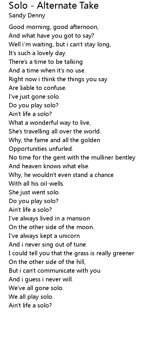 Ain't life a solo? |