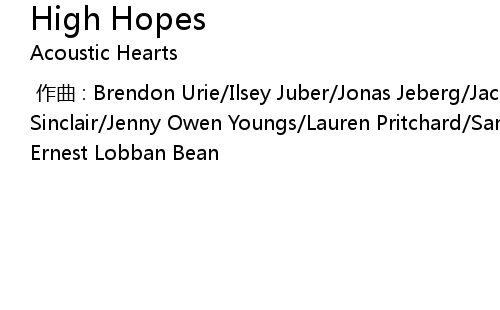 | [00:00.00-1] | zuo qu : Brendon Urie Ilsey Juber Jonas Jeberg Jacob Scott Sinclair Jenny Owen Youngs Lauren Pritchard Sam Hollander Taylor Parks William Ernest Lobban Bean |