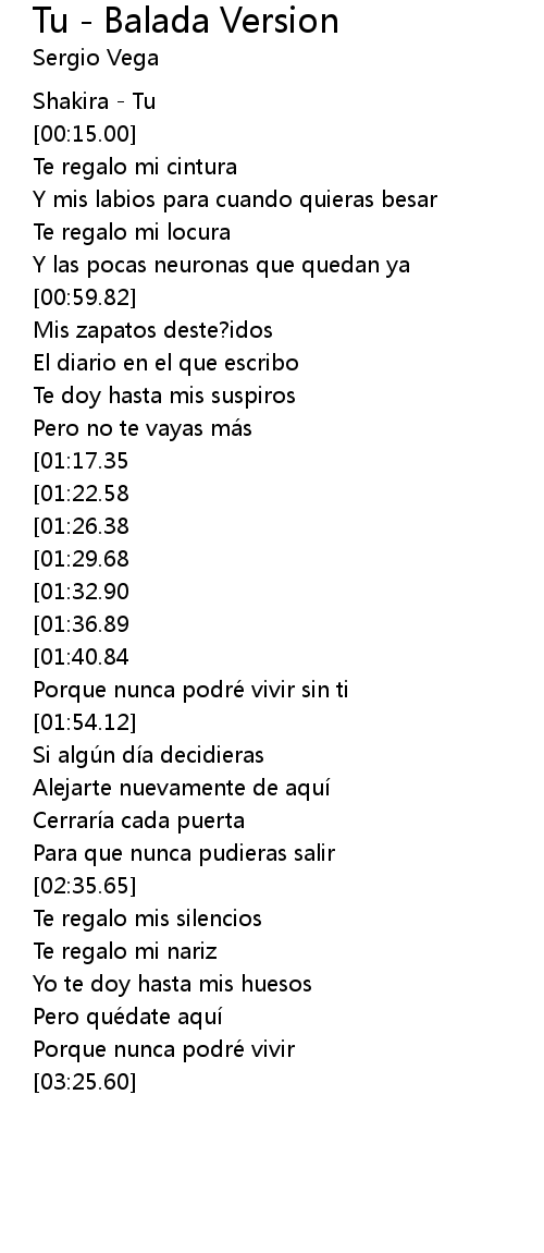 | [02:51.99][01:17.35] | Porque eres tu mi sol |