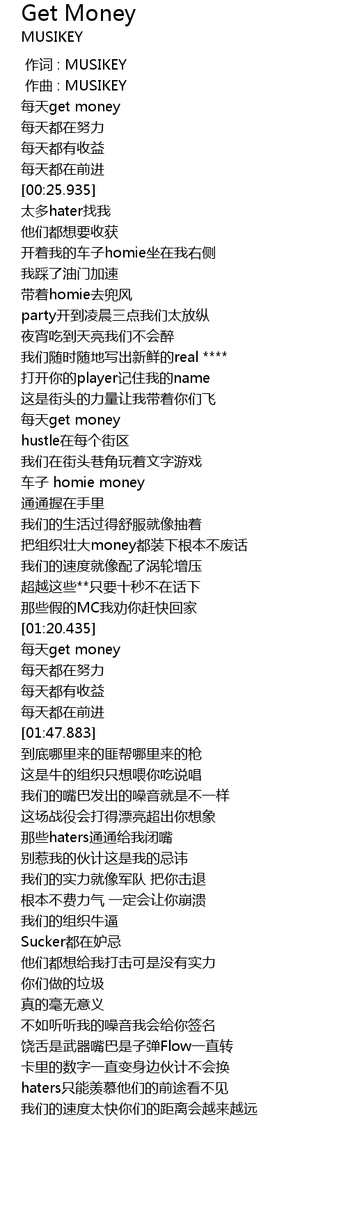 | [01:35.890] | 每天get money |