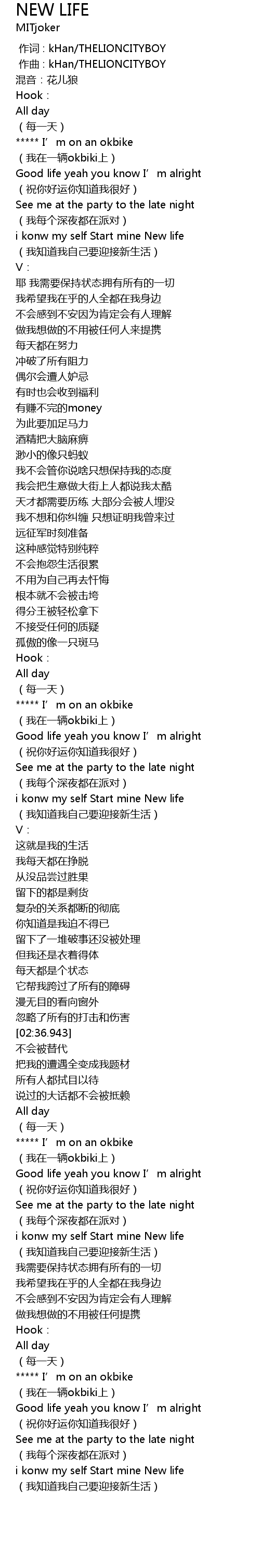 | [02:56.694] | wǒ zhī dào wǒ zì jǐ yào yíng jiē xīn shēng huó |