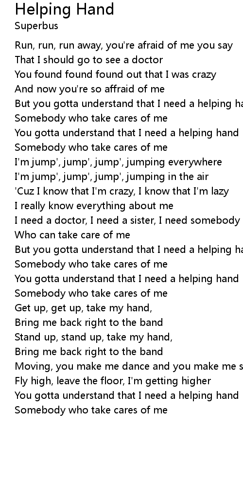 You gotta understand that I need a helping hand |