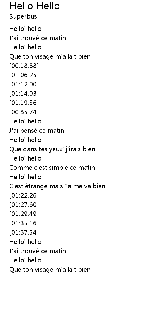 | [01:52.75][01:06.25][00:19.85] | Hello' hello |