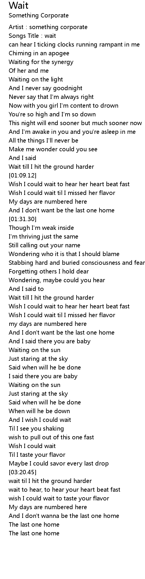 | [03:09.72] | Wish I could wait |