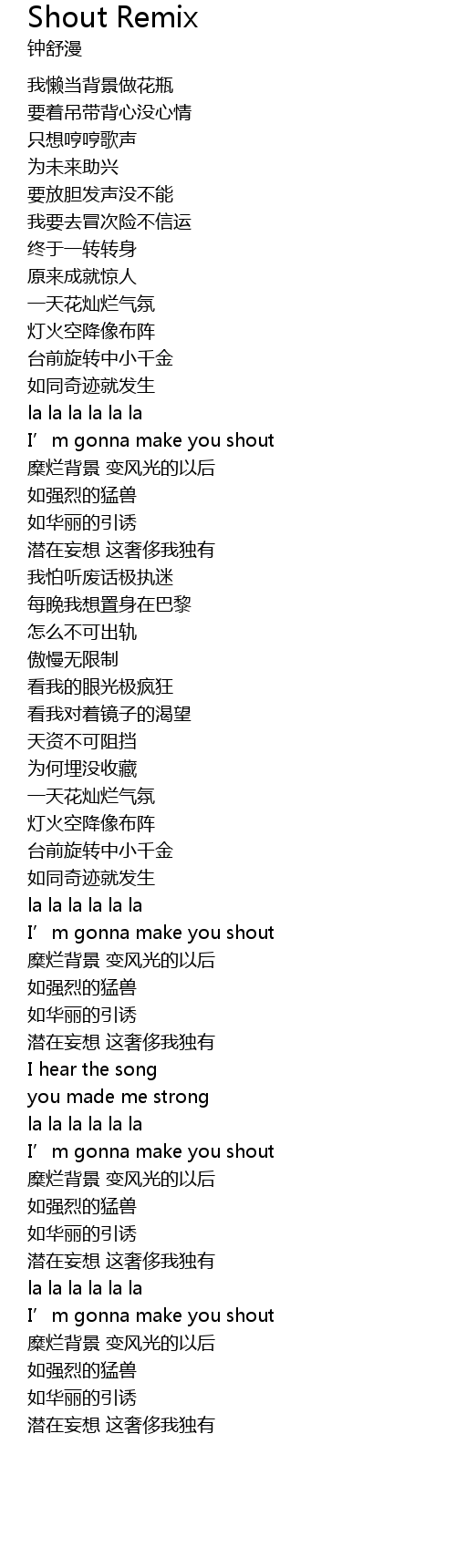 | [01:35.250] | kàn wǒ de yǎn guāng jí fēng kuáng |