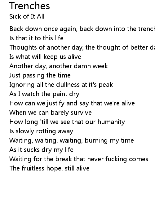 Back down once again, back down into the trench |