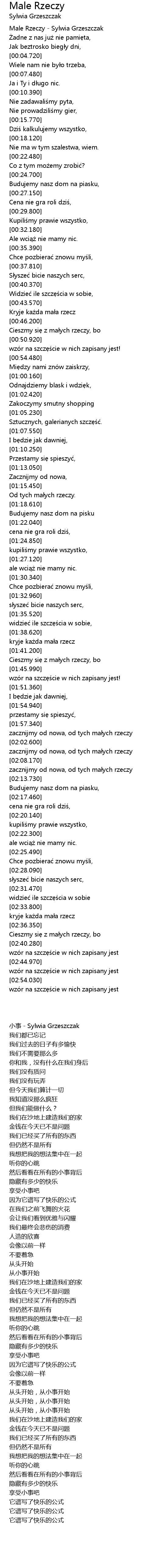 | [00:01.290] | Male Rzeczy - Sylwia Grzeszczak |