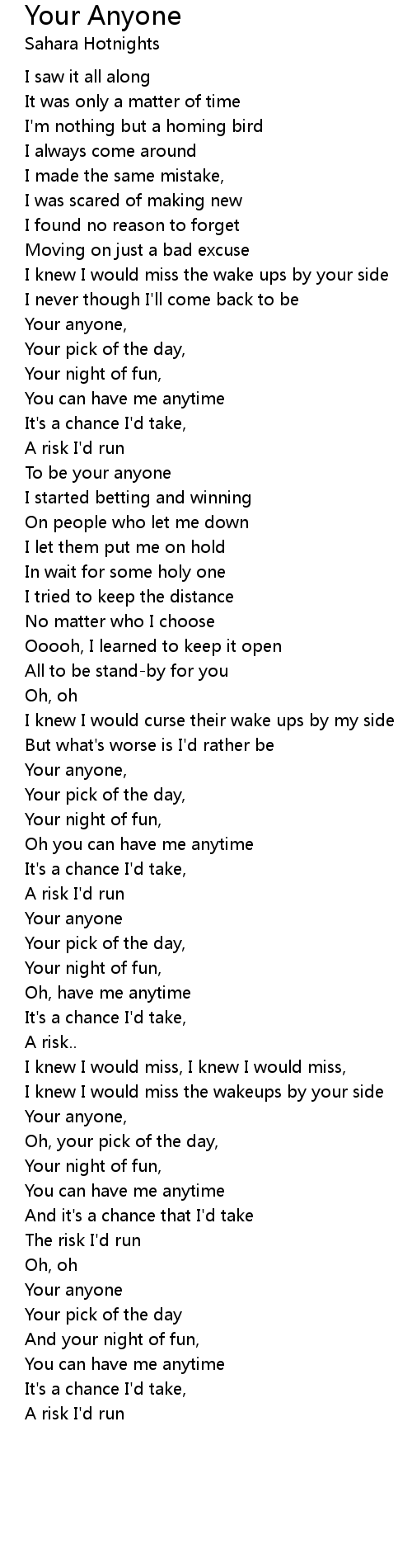 Your anyone, |