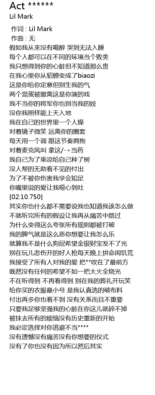 | [00:00.000] | 作词 : Lil Mark |