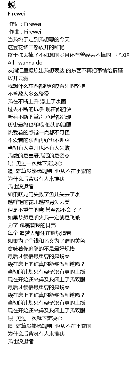 | [00:00.000] | 作词 : Firewei |