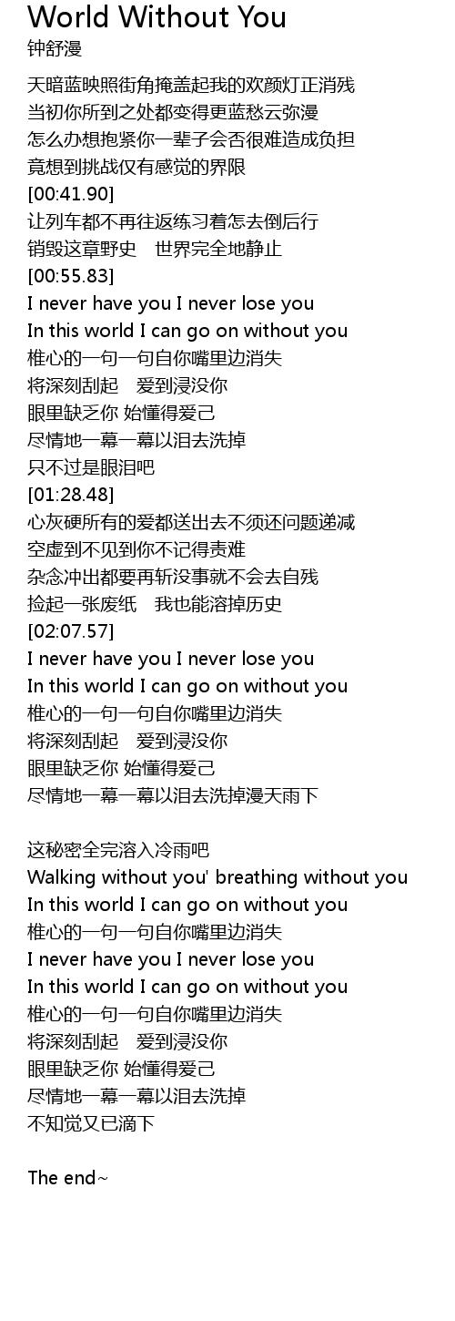 | [00:50.20] | 销毁这章野史 世界完全地静止 |