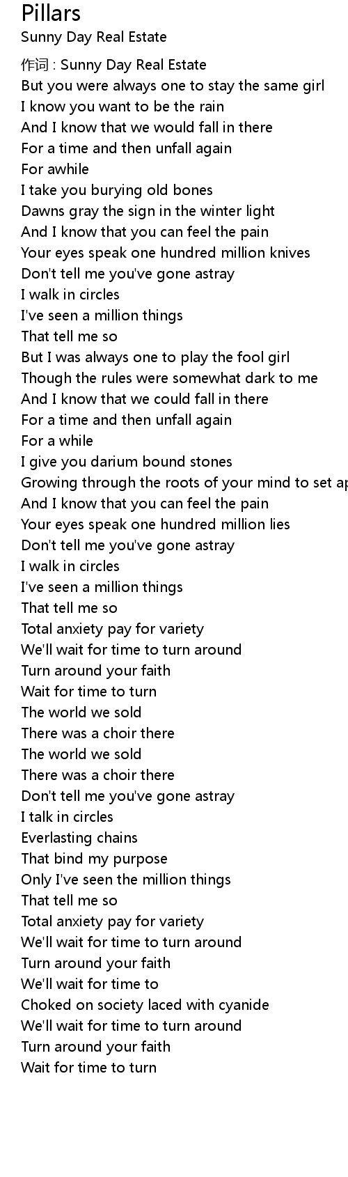 | 作词 : Sunny Day Real Estate | |